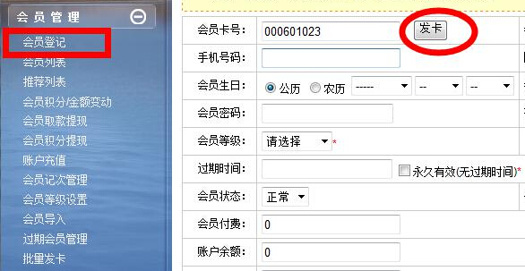 进入会员登记,把IC卡放在刷卡器上, 点击发卡,就会出现咱们刚刚写的卡号。