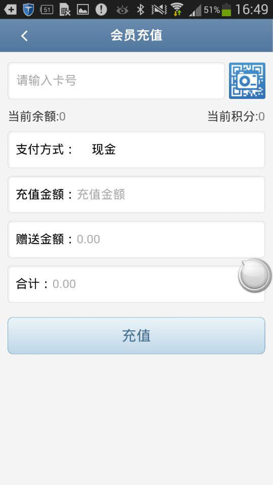 来选择扫描会员条形码以及二维码。如果是扫描二维码的话就很好的将这一APP与微信会员卡进行互通。会员可以通过打开微信会员卡里的二维码通过这块进行扫描,那么所有该会员的信息就会显示出来。