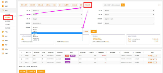 一个会员可以打多个标签,当需要找出某个标签所对应的所有会员时,进入【会员管理】点开【筛选会员】找到【会员标签】即可选择所需要的会员信息