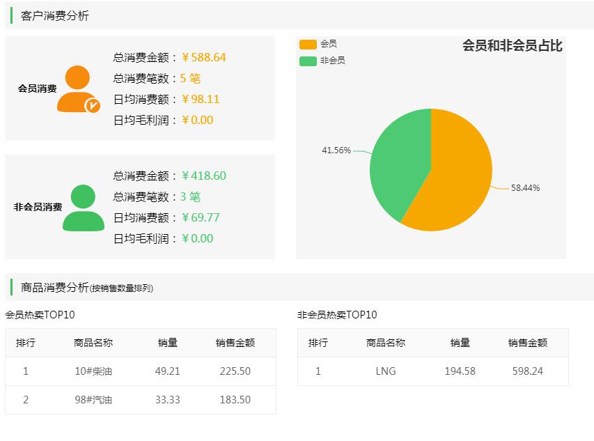 3、智慧管理:油枪、油品管理、油品折扣针对于不同的会员享受不同的优惠,同时可以根据会员的消费情况、商品消费情况惊喜大数据分析,精准营销。