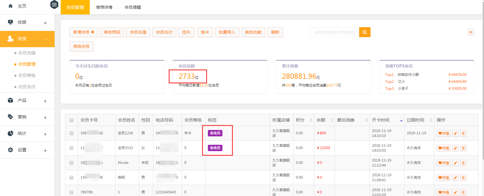 3、能提供短信营销功能,客户消费提醒、充值消息提醒、会员生日问候等;