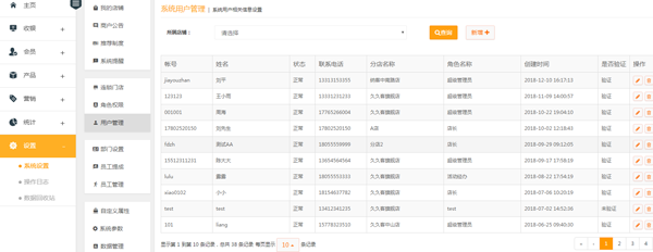 4、极悦注册会员管理软件可添加多个操作员账号,由总店分配权限,员工登录自己的账号进行相应操作,总账号可查看所有员工账号的操作记录。