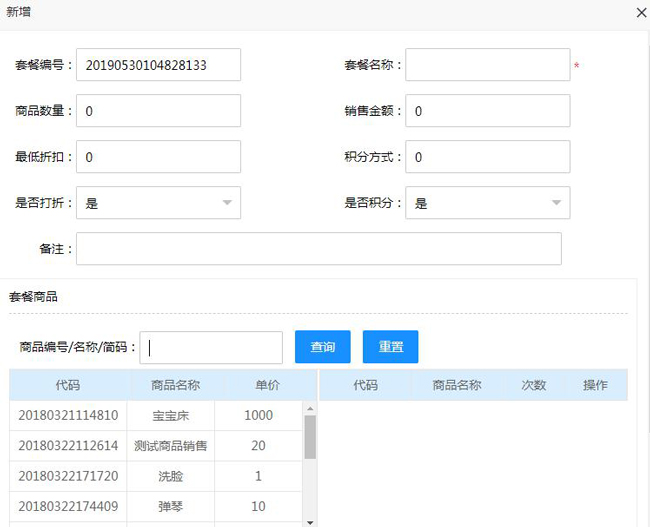 21、【功能优化】:新增产品套餐的时候,增加筛选产品输入框,产品多的情况下,一页页找,非常麻烦,所以新增产品输入框,可以根据简码进行搜索