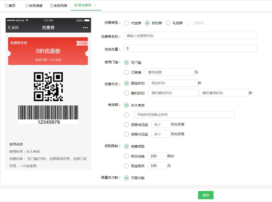 想必优惠活动是绝大部分顾客都难以拒绝的营销策略,所以说商户建议直接选择优惠券、折扣券或是积分换礼的形式吸引顾客前来消费,避免纸质券印刷成本高发送到顾客范围小,可选择会员管理系统中的会员营销功能快捷发送,准确度高、发送覆盖面广且低成本。