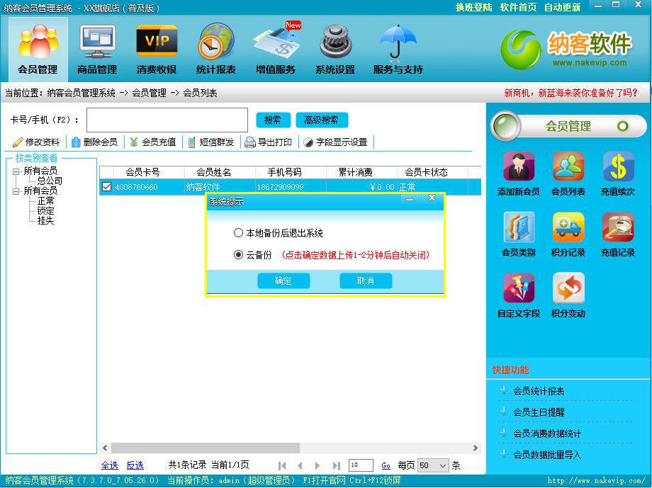 自动备份如下图所示,关闭软件是,软件会弹出提示“本地备份后退出系统”,点击确定退出软件即可完成自动备份数据。