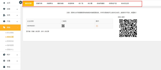 1、首先需要商家有一个认证的公众号(公众号类型为服务号),与极悦注册软件进行对接,扫码授权后,有关微信的相关设置都会展现出来。